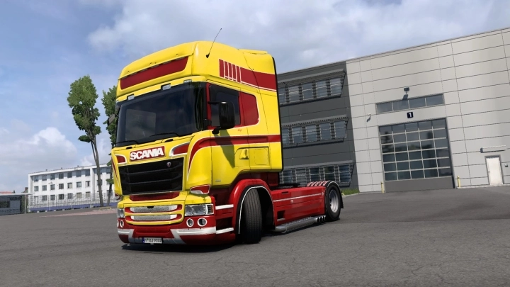 Мод Scania RJL Yellow Red Skin V1.0 для ETS2 1.49.